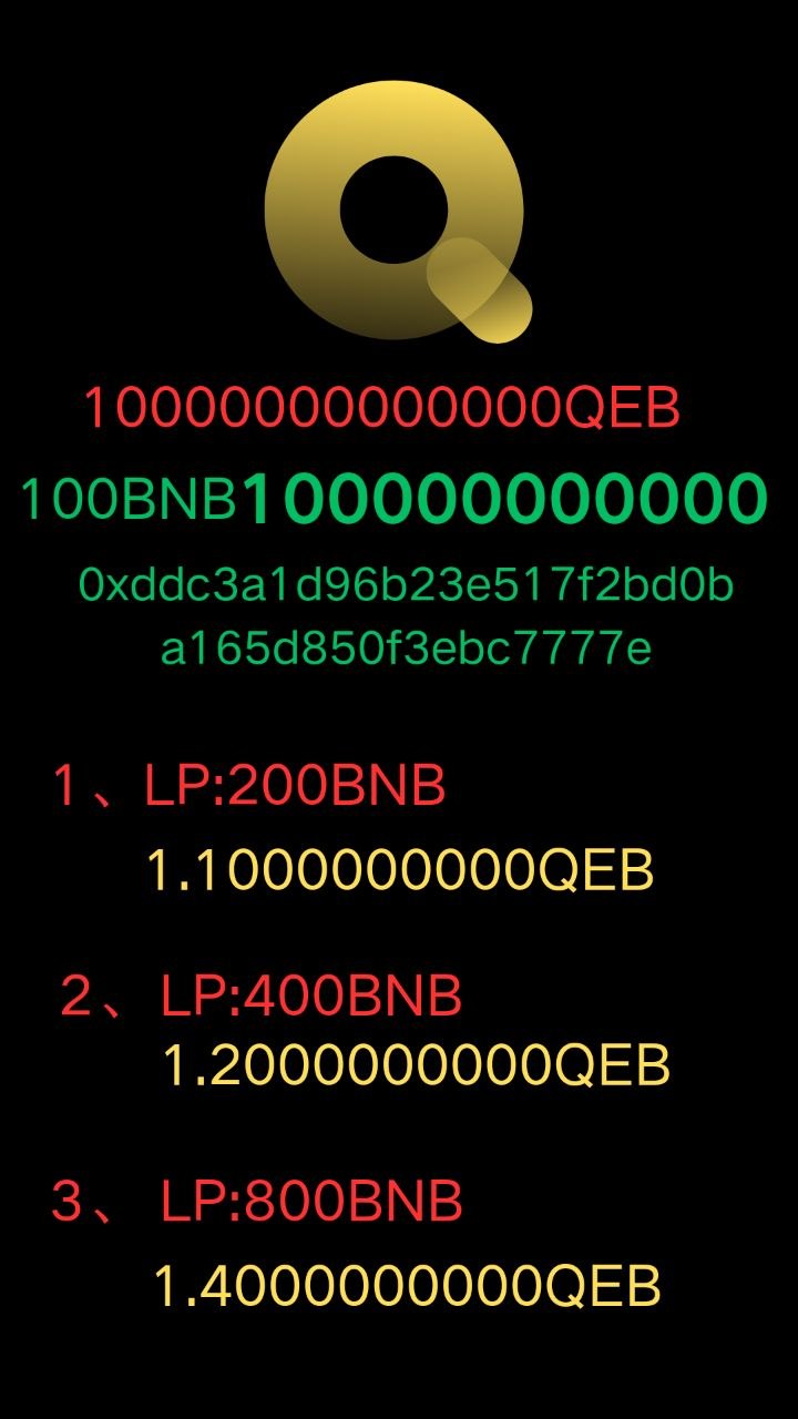 Once you switch to the 366 protocol address, you will receive 1 billion QEB and 1 BNB in equivalent value. After receiving these 1 billion QEB, which is equivalent to 1 BNB in value, you will receive a daily dividend of 2,732,240.437158469 QEB. This dividend will continue for 366 days until it ends. Of course, to strengthen the early high consensus, if you only sell the daily dividend, we will continue to pay dividends normally. If you sell all of it, then the dividend will stop. If you continue to hold and invest, we will continue to distribute for 3 years until it ends. Of course, this is a long period of time. Let's describe it in a few words: "Never be impatient, and accumulation means more." This group of people will be the richest in this era. I hope those who have the right connection will meet, be grateful, and cherish.